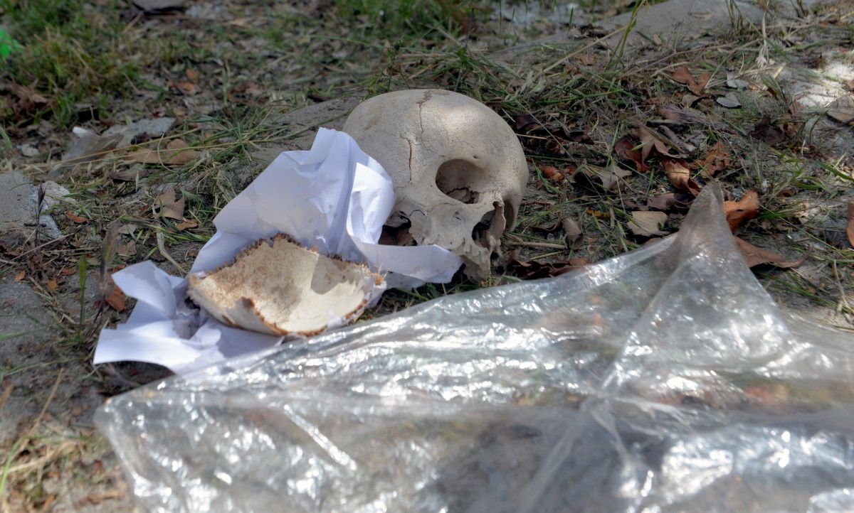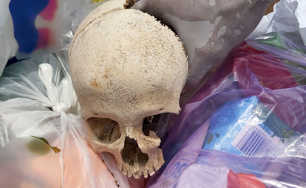 Mahallesindeki küçükbaş hayvanları beslemek için çöpte bayat ekmek arayan Kaplan, poşetlerden birinde kağıda sarılı insan kafatası buldu.