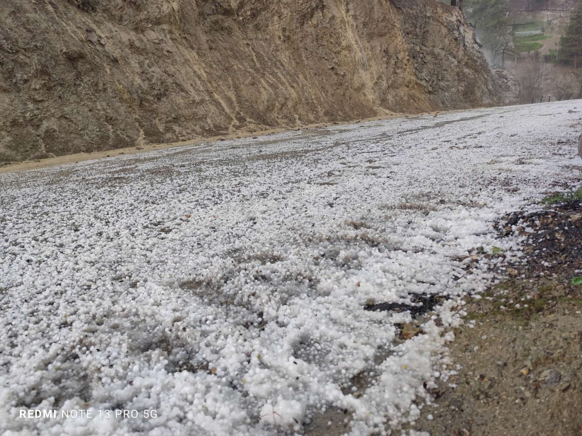 Yaklaşık 15 dakika süren dolu, hem tarım topraklarını hem de cadde ve sokakları adeta beyaza boyadı.