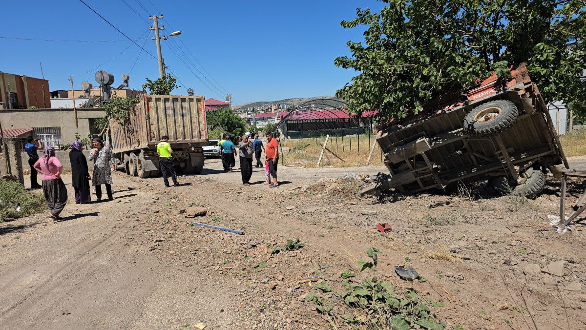 Adana’da freni boşalan hafriyat kamyonu kaza yaptı