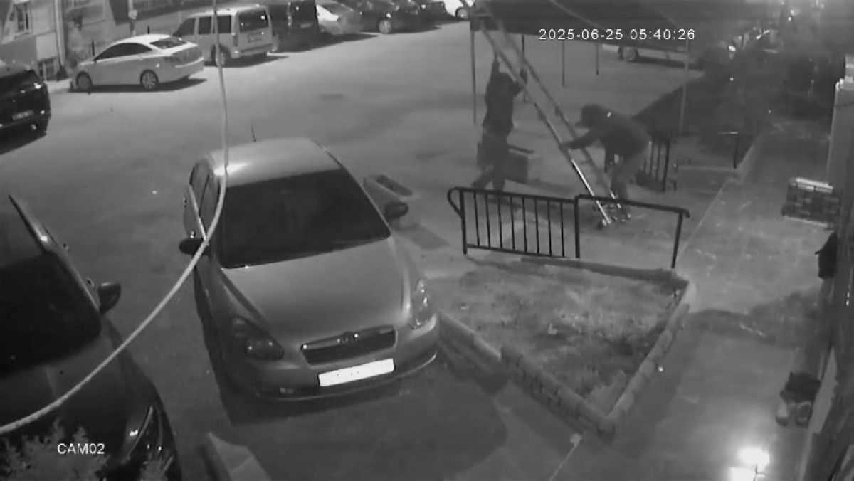 Saat 06.00 sıralarında meydana gelen olayda, yüzlerini kapüşonla gizleyen şüpheliler, bir apartmanın birinci katındaki dairenin balkonuna seyyar merdivenle tırmandı.