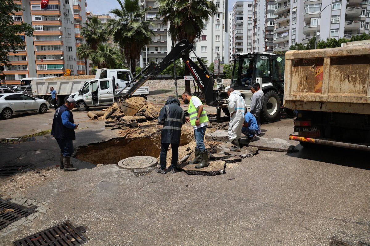Aşırı yağış nedeniyle merkez Çukurova ilçesinde yol çöktü.