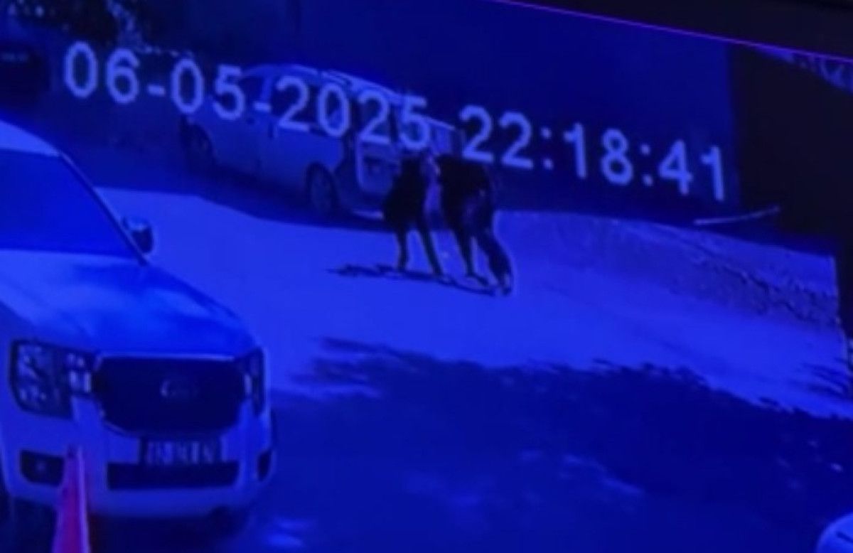 Görüntüde, yolda yürüyen 2 kızdan birine köpeğin saldırdığı ve genç kızın kaçtığı anlar yer alıyor.