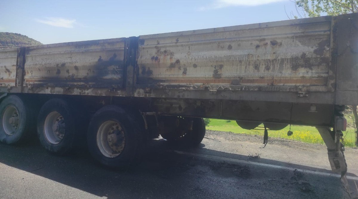 Tırın dorsesinden yükselen dumanları fark eden sürücü Mahsun Solmaz, aracı yol kenarına park ederek durumu itfaiye ekiplerine bildirdi.
