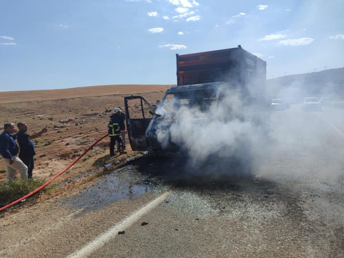 Durumu fark eden şoför aracı çabucak yol kenarına çekti. Kısa müddet içinde yükselen dumanlar alevlere dönüştü.