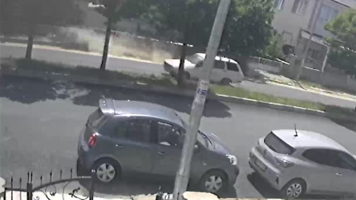 Öte yandan kaza anı bir iş yerinin güvenlik kamerasınca kaydedildi.