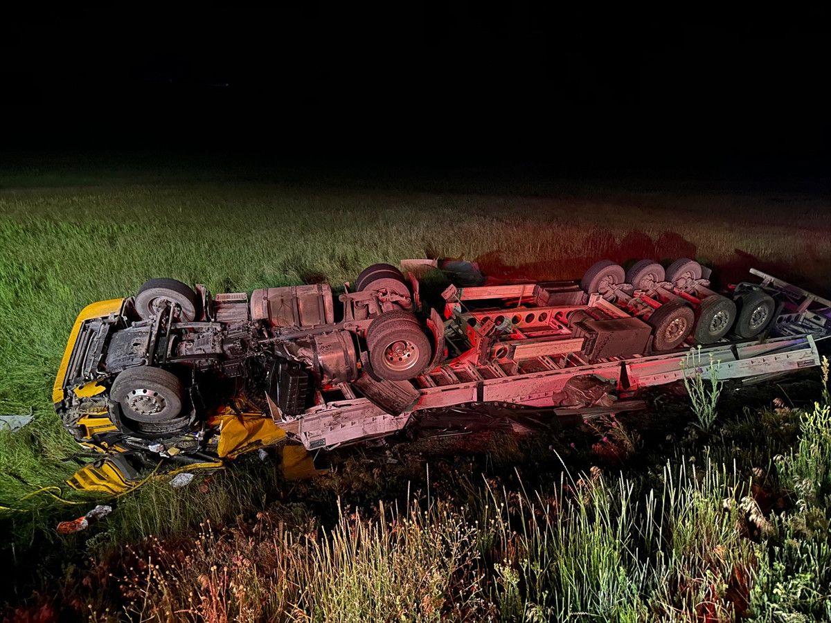 İsmail B. (47) yönetimindeki 52 RB 500 plakalı tır, Ağrı-Erzurum kara yolu Güneykaya köyü mevkisinde şarampole devrildi.