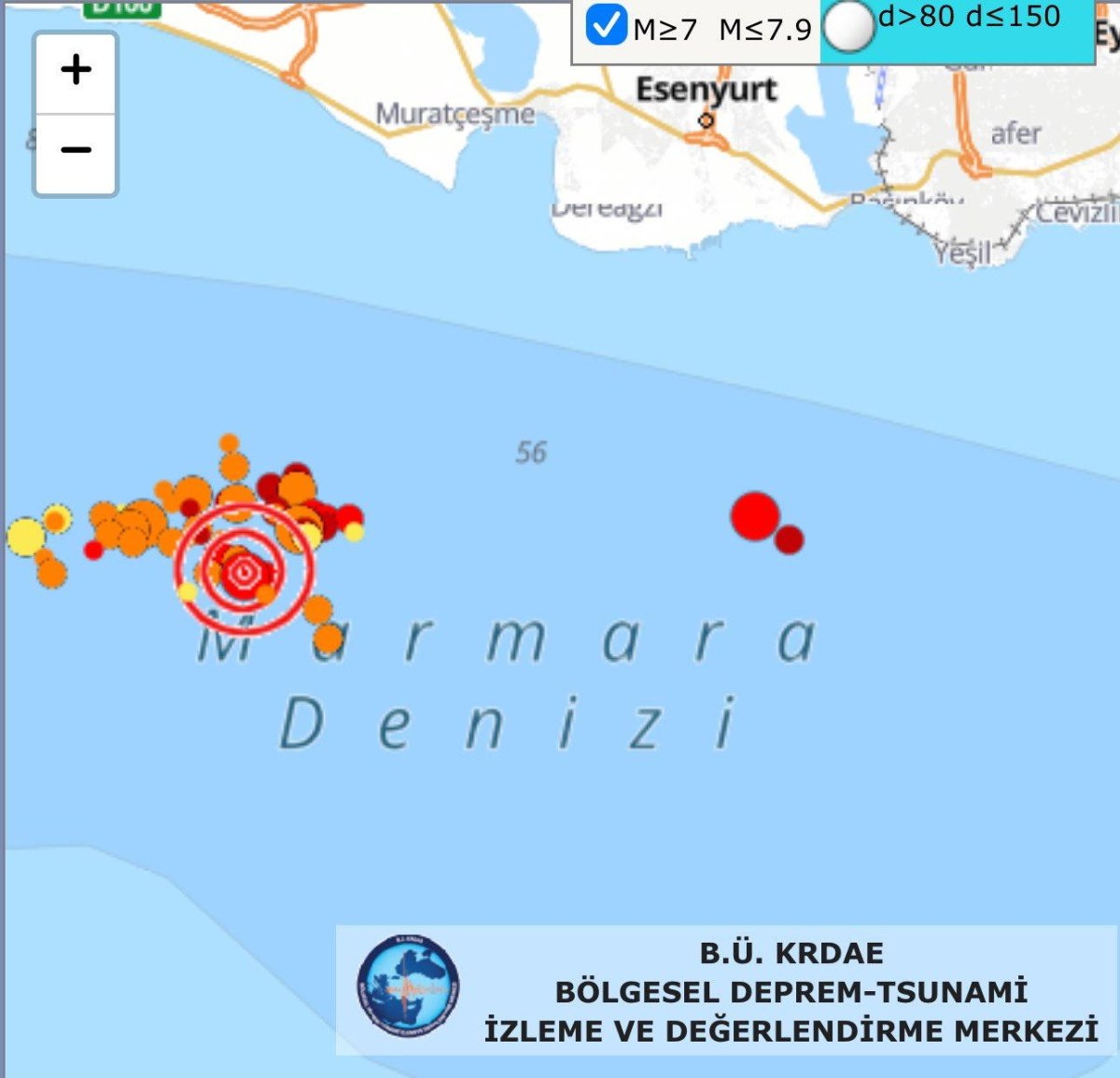 23 Nisan’da Marmara Denizi’nde meydana gelen 6,2 büyüklüğündeki depremin ardından bölgedeki sarsıntılar dinmek bilmiyor. Bugün İstanbul bir kez daha yerin altından gelen hareketlerle sarsıldı. Akşam saatlerinde Marmara Denizi açıklarında, merkez üssü Büyükçekmece olan ve en büyüğü 4,3 olarak kaydedilen art arda 5 artçı deprem yaşandı.