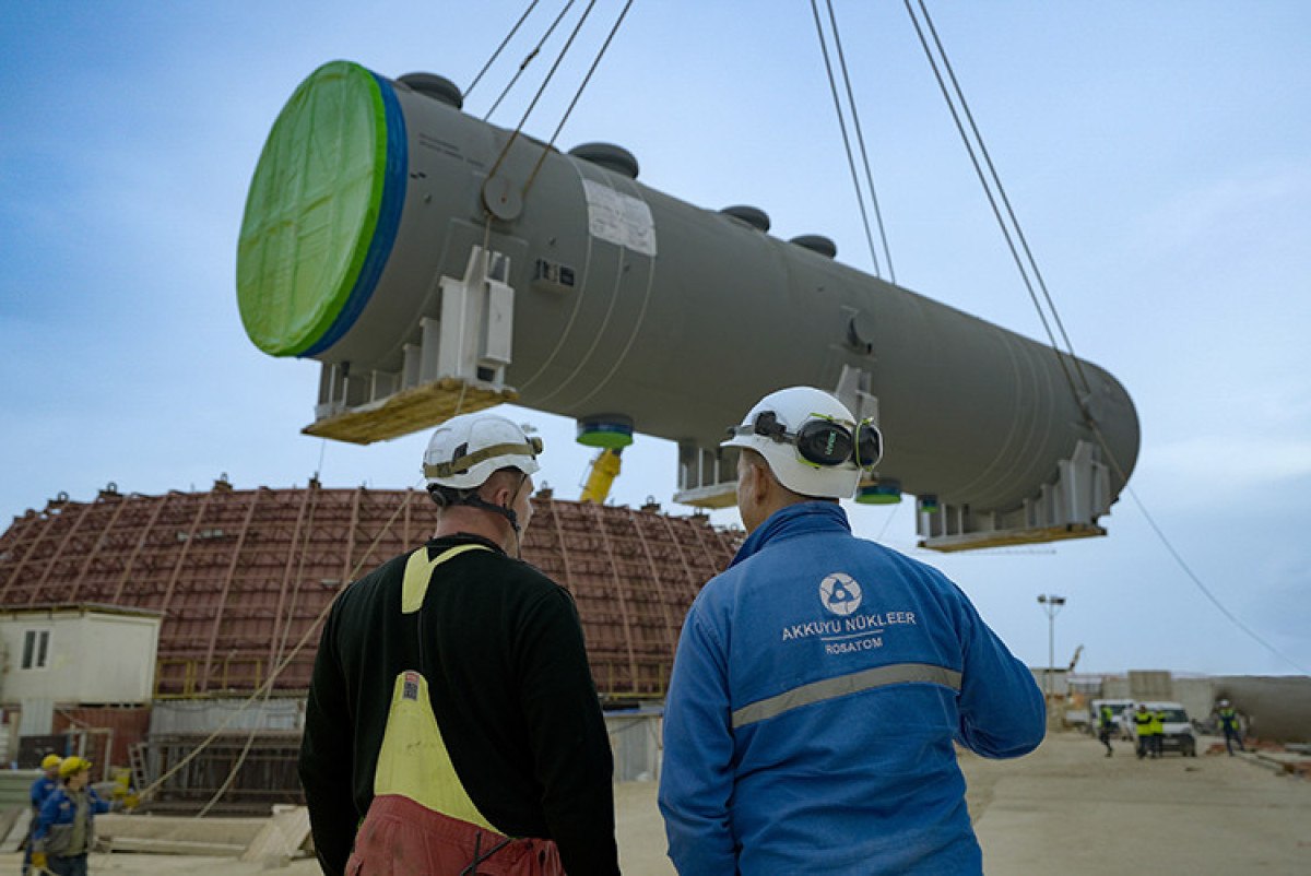 Akkuyu Nükleer AŞ’nin açıklamasına göre, türbin tesisatının ısı değişim ekipmanının önemli bileşeni olan tank, otomatik tekerlekli platformla türbin binasına getirildi.