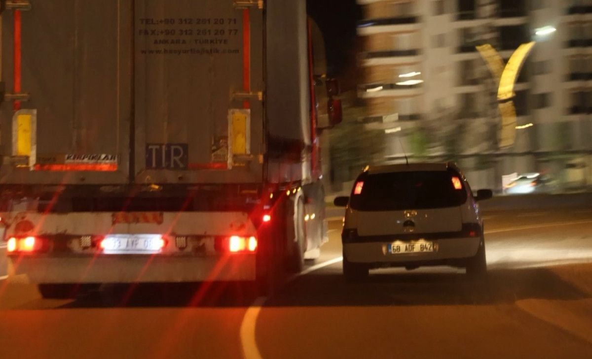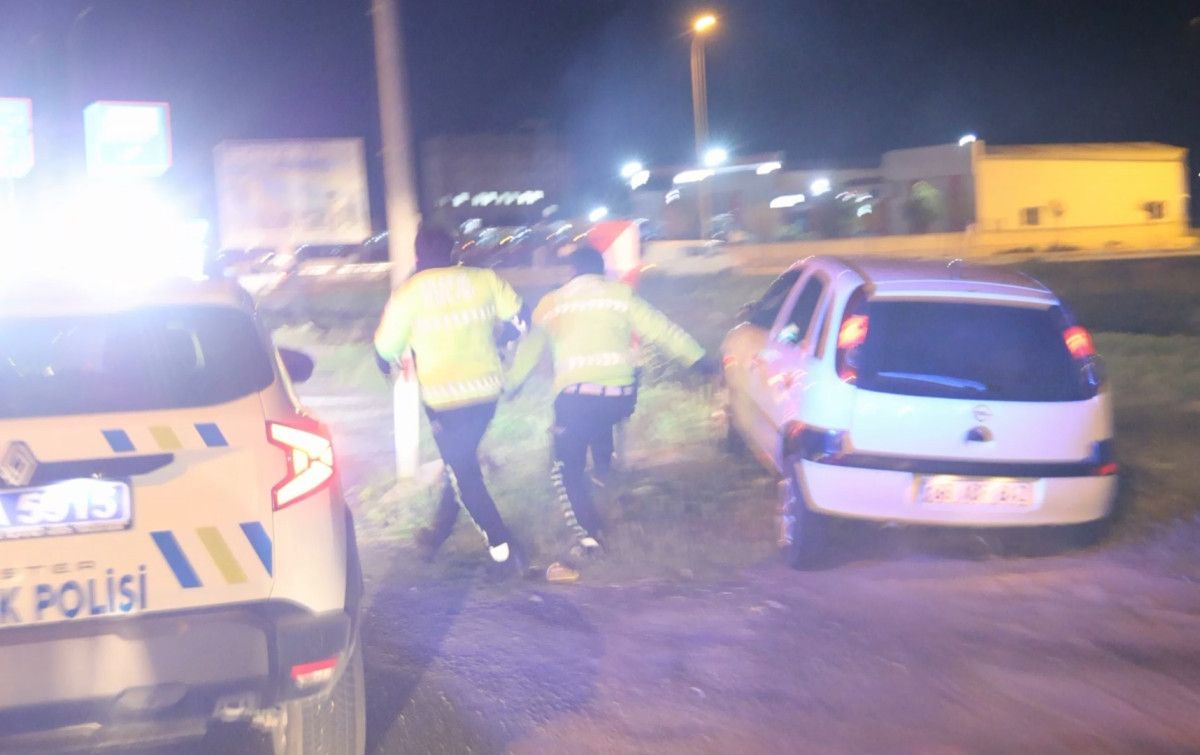 Önünde polis aracı, ardında bir öbür araç olduğu için olduğu yerde sıkışan şoför kaçamayacağını anlayınca aracını yolun kenarında bulunan yere sürdü.