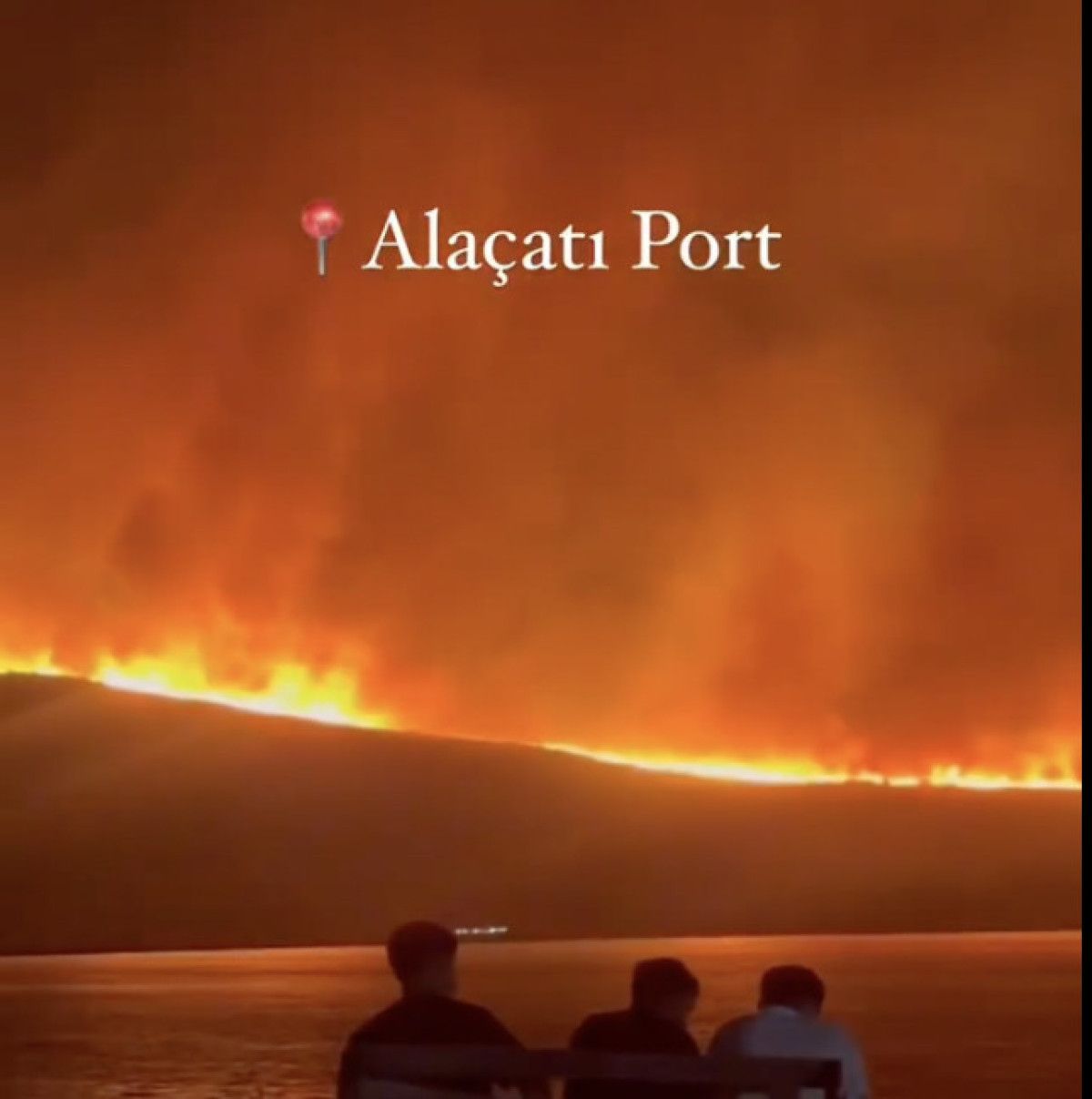 Dün gece Alaçatı’daki yangını görüntüleyen vatandaş, şaşkınlığını gizleyemedi.