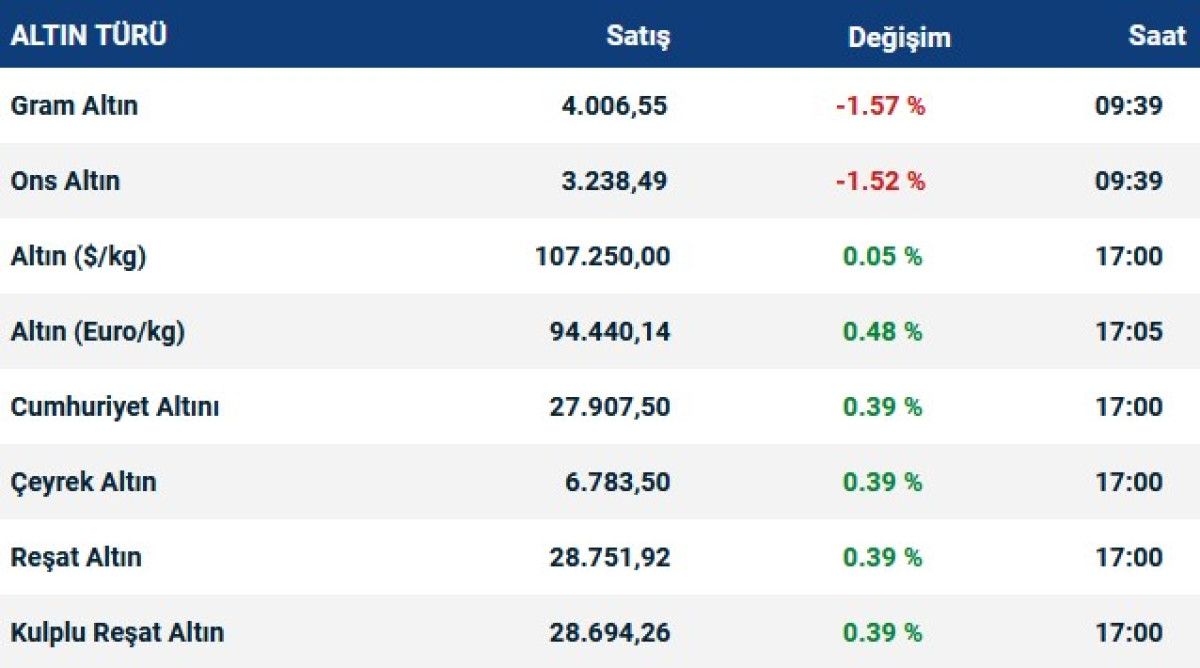 İstanbul Kapalıçarşı’da gram altın alış fiyatı 4011 lira, satış fiyatı ise 4065 lira olarak kaydedildi.