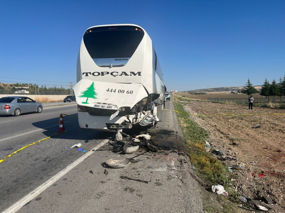 Bu sırada otoyolda seyreden kamyonet, duramayarak otobüse arttan çarptı.
