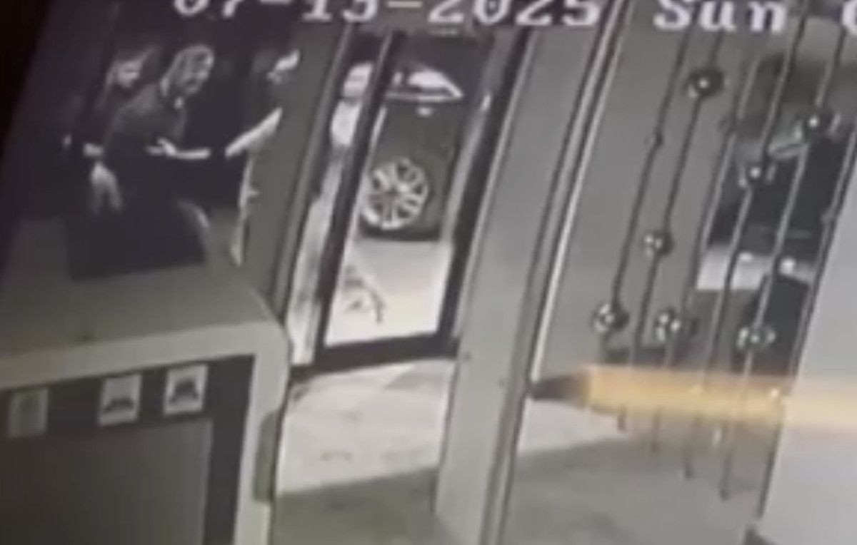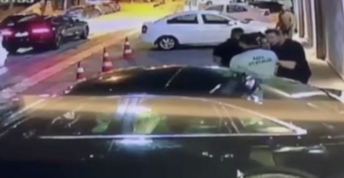 Güvenlik vazifelisi binaya girdikten sonra şahıslar bina kapısını tekmelemeye başladı.