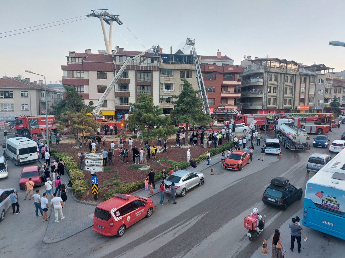 Ankara’nın Yenimahalle ilçesi Ragıp Tüzün Caddesi’nde 4 katlı bir binanın en üst katında yangın çıktı.