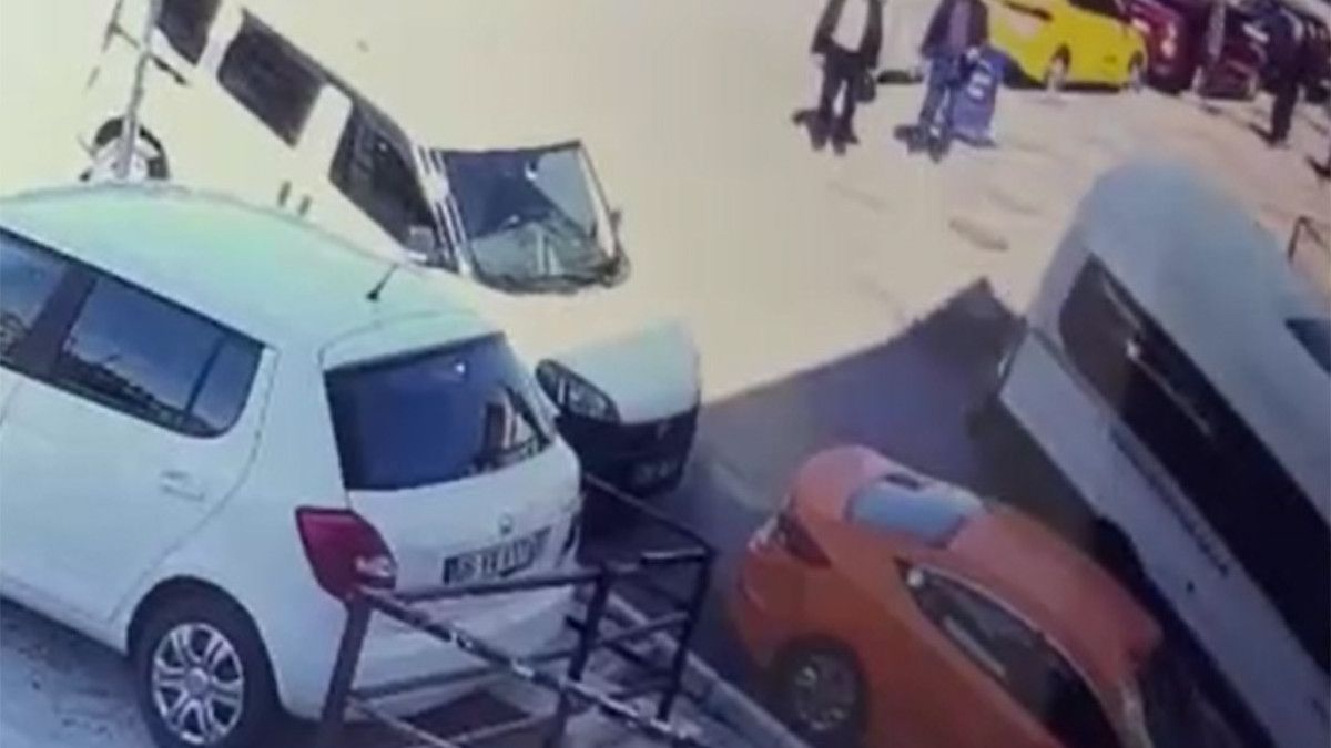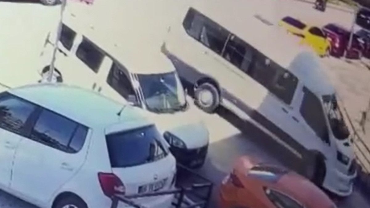 İlk anları kamera kaydına da yansıyan kazada can kaybı yahut yaralanma yaşanmazken apartmanda ve servis aracında maddi hasar oluştu.