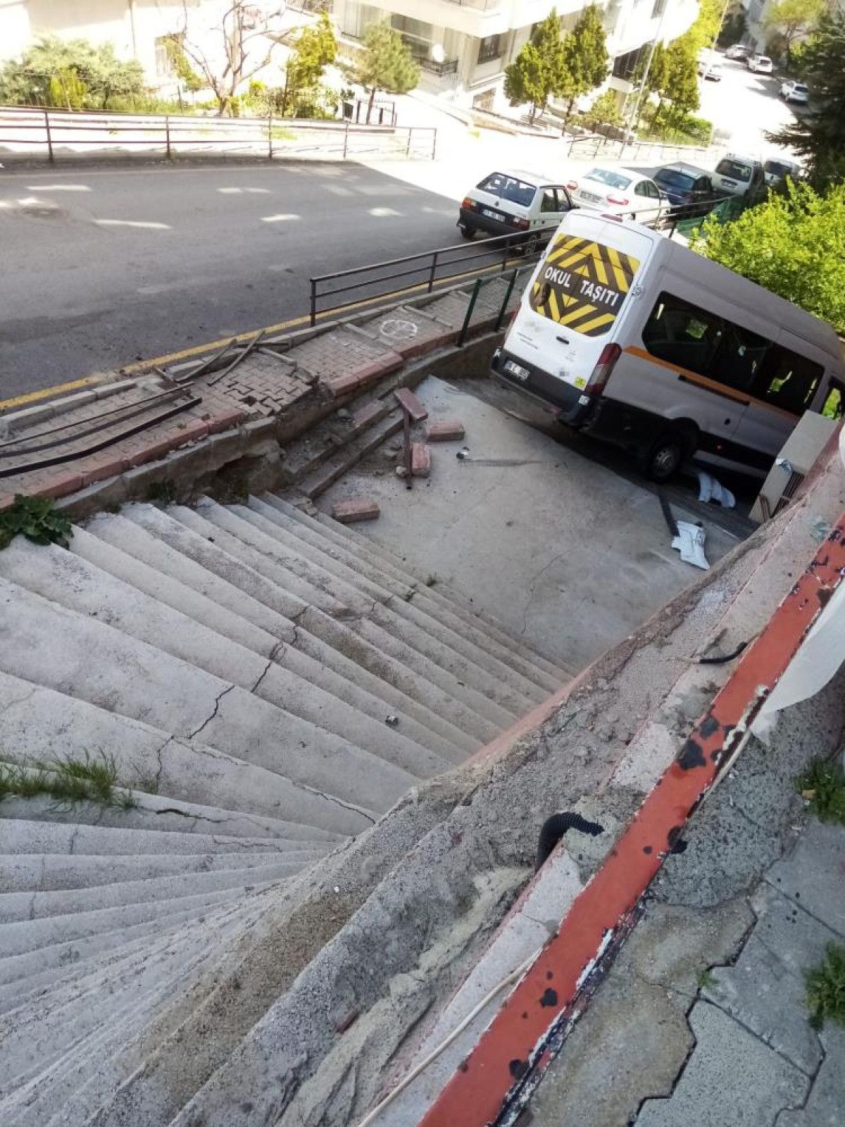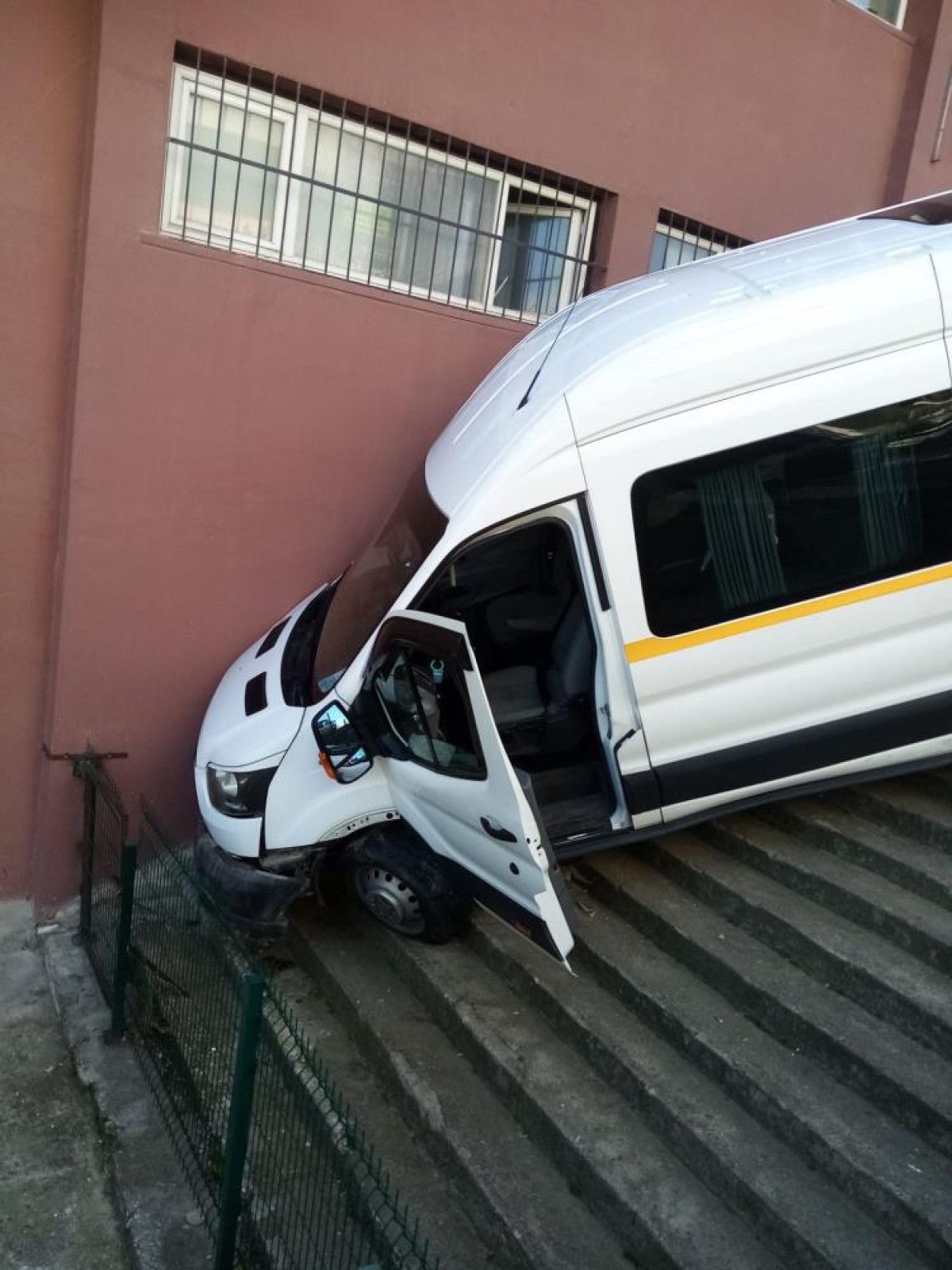 Olayla ilgili konuşan apartman yöneticisi Mustafa Gürsoy, “İki bayan karşıdan karşıya geçerken yoldan gelen servis aracı yol verdi. O ortada dönüşü genişten alan servis aracı rögar kapağına çıktı. Şoför direksiyon hakimiyetini kaybederek binanın yan tarafına düştü. Meyyit ve yaralı yok. Ambulans geldi, sıhhat grupları sürücüyü muayene ettiler. Rastgele bir şey çıkmadı. Akabinde trafik polisi geldi ve tutanak tuttu. Belediyeye ilişkin taşlar ve demirler ziyan görmüştü. Onlar da inceledi ve gitti” diye konuştu.