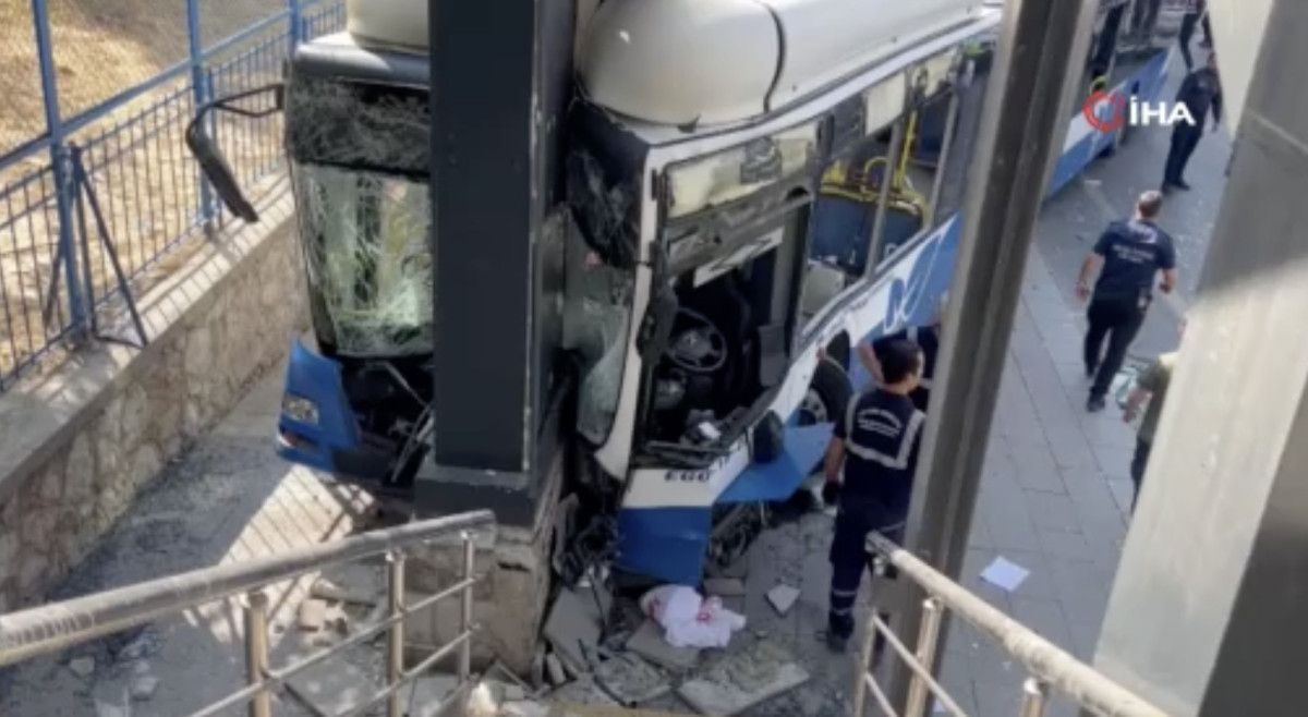 Keçiören ilçesinde seyreden körüklü EGO otobüsü, bilinmeyen bir nedenle denetimden çıktı.