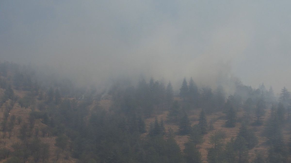 Görüntülerde, ormanlık alandan yükselen ağır duman ve alevlerin geniş bir alana yayıldığı dikkat çekti.