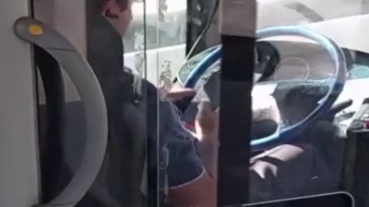 Yolculardan biri otobüs sürücüsünün direksiyon başında cep telefonuyla oynadığı anları saniye saniye görüntüledi.