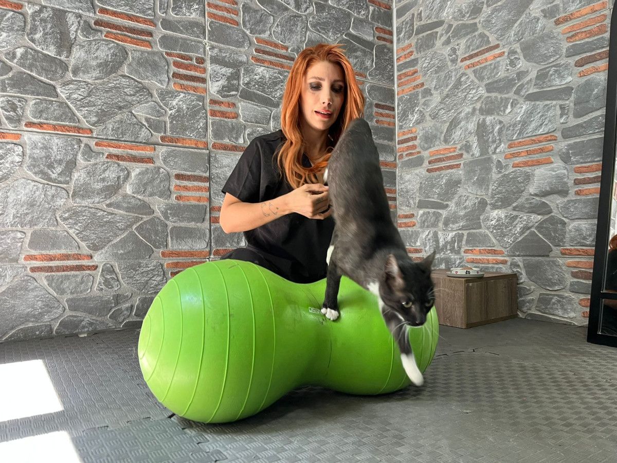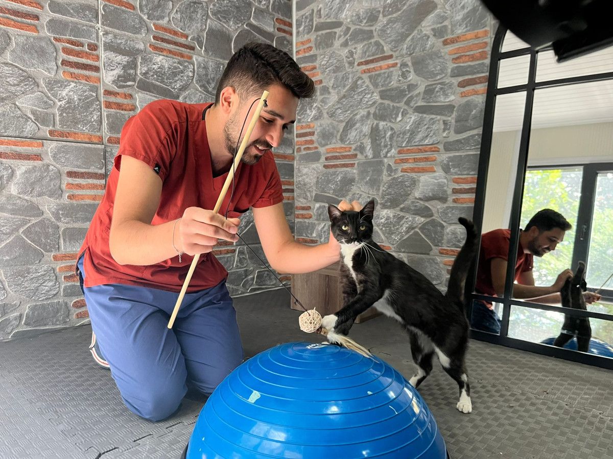 ‘Hamsi’ ismi verilen kedi, 2 aylık medikal tedavi, pasif antrenmanlar, lazer terapi, elektro terapi, manyetik alan terapi ve manuel terapi ile hayata tutundu.
