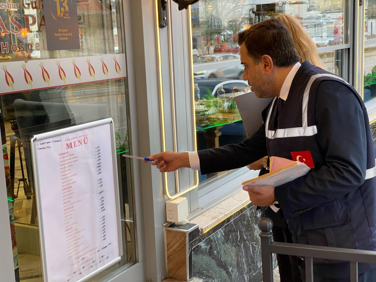 Ankara’nın Çankaya ilçesi Mustafa Kemal Mahallesi’ndeki işletmelerde menü ve tarifeler tek tek kontrol edildi.