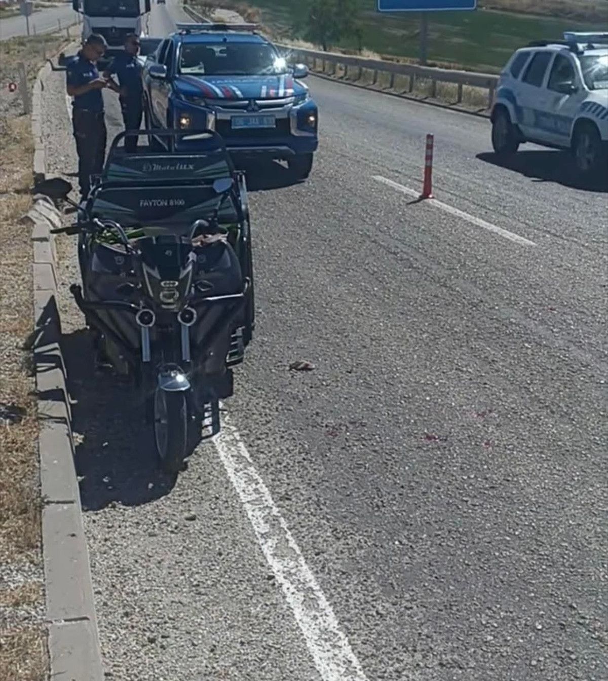 3 tekerli motosiklet tek şeritli yolda seyrettiği sırada tır tarafından sıkıştırıldı.