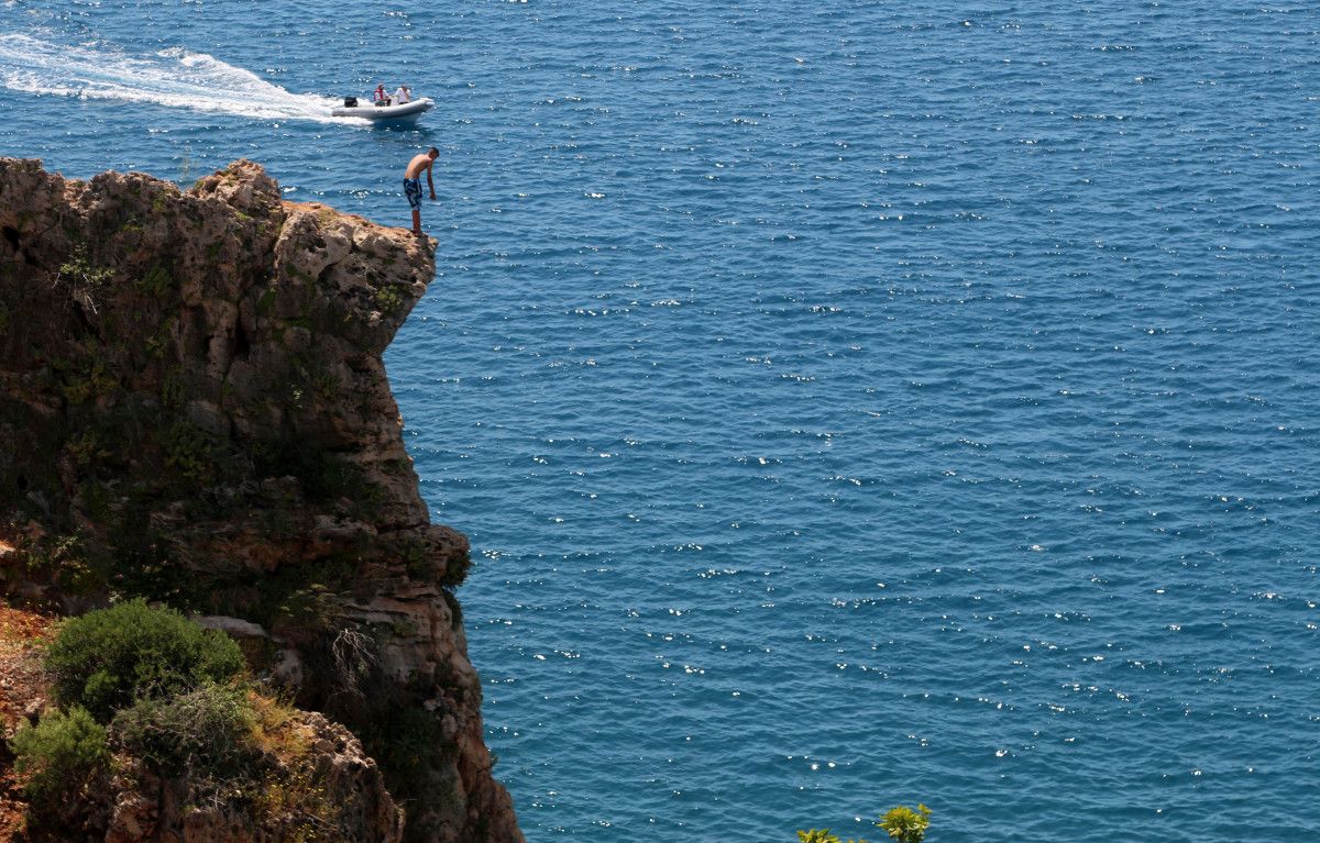Antalya’da 30 metrelik falezlerden denize tehlikeli atlayış