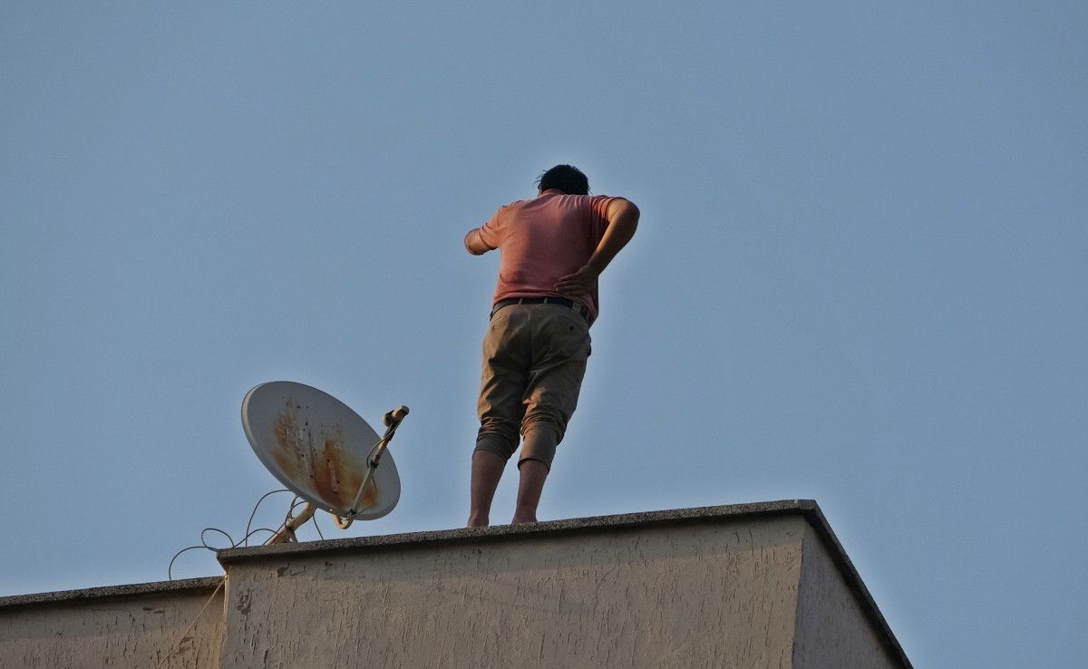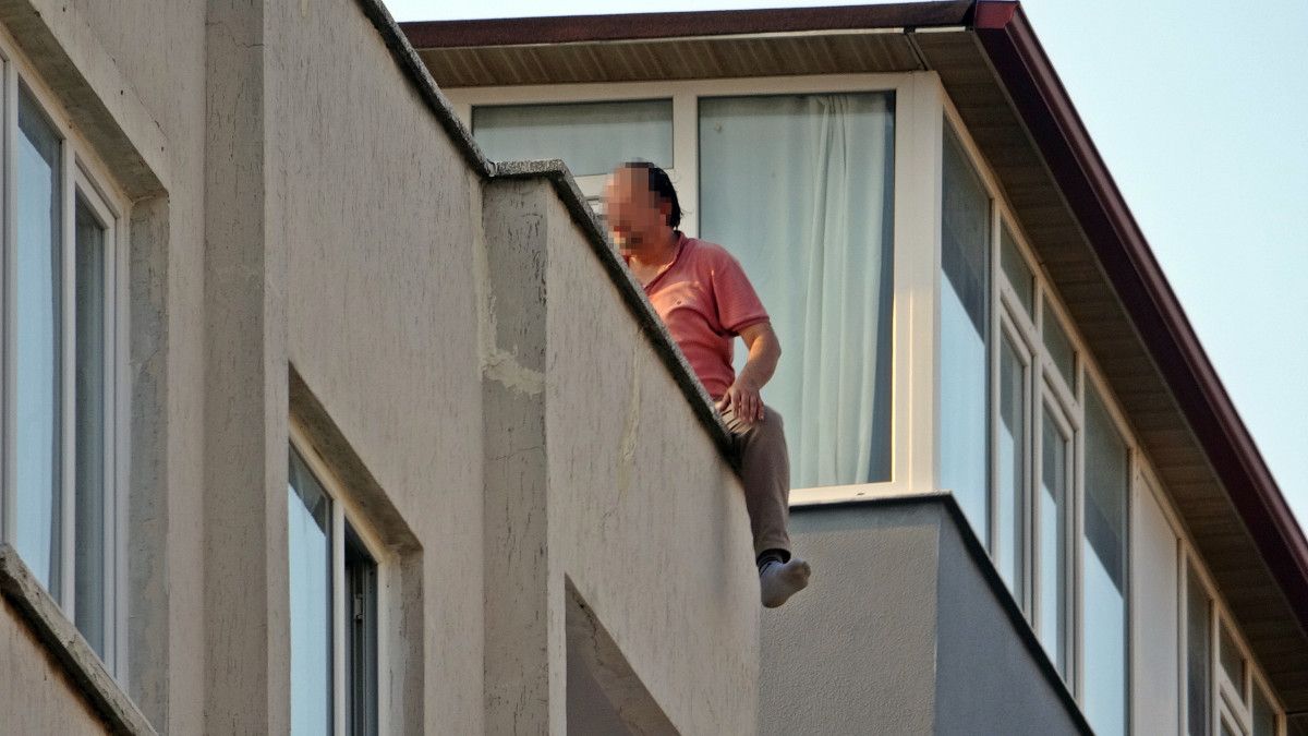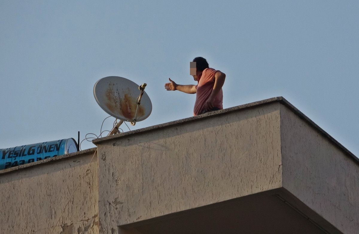 Bir türlü ikna olmayan adam, birden fazla sefer bulunduğu pozisyonu değiştirip apartman çatısında köşeden köşeye geçti.