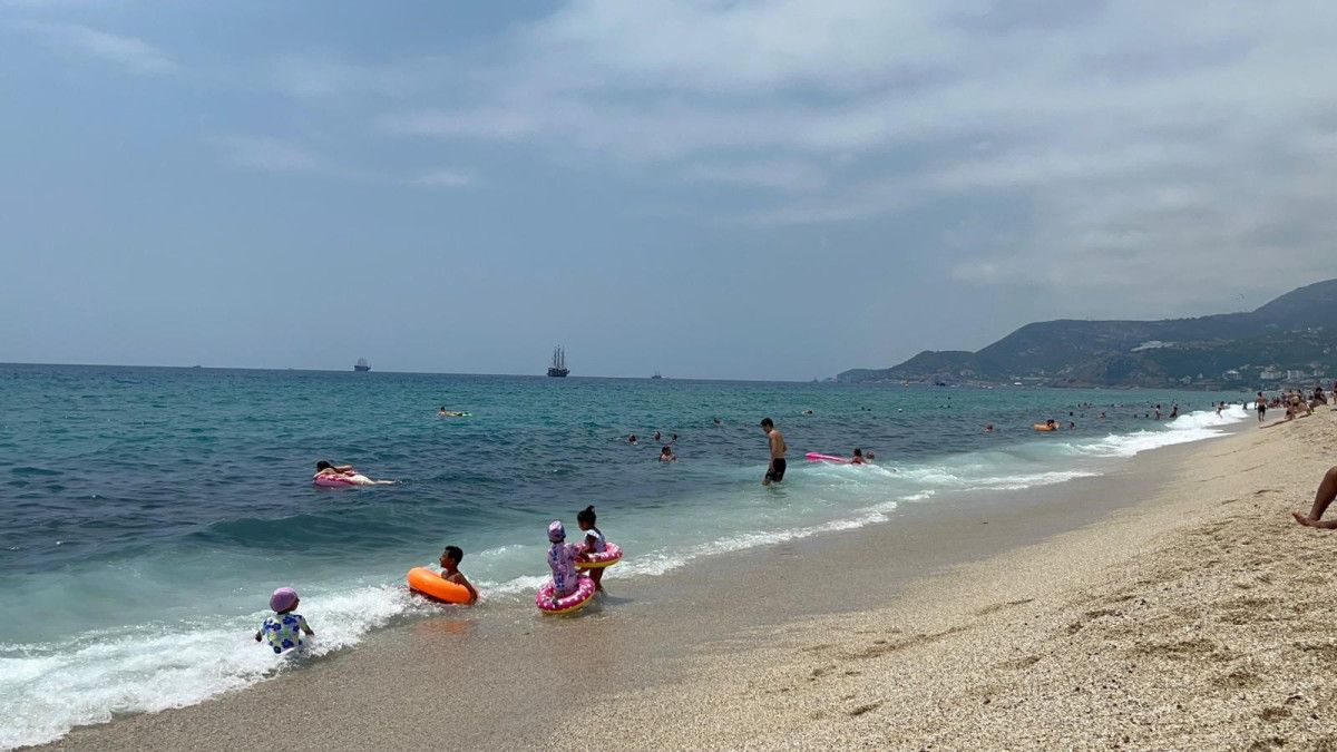 Hava sıcaklığının 31, deniz suyunun ise 27 dereceye ulaştığı ilçede, Kleopatra Plajı erken saatlerden itibaren doldu.