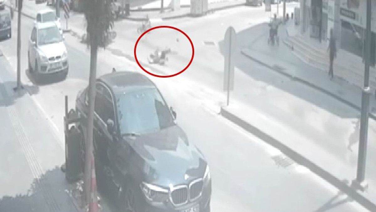 Öte yandan, kaza anı etraftaki bir iş yerinin güvenlik kamerasına saniye saniye yansıdı.