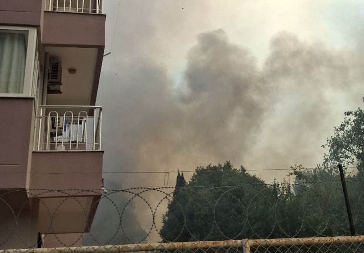 Apartmanların yaklaşık 10 metre araya kadar geldiği bir sitede panik anları yaşandı. Binalardan çıkan vatandaşlar hortumlarla yangına birinci müdahale bulundu.