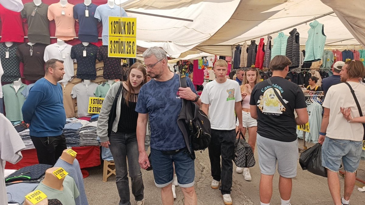 Minibüslerden inerek Antalya Caddesi üzerindeki pazara ulaşan turistler; giyim, çanta, valiz ve hediyelik eşya alışverişi yaptı. Ellerinde poşetlerle pazar alanından ayrılan turistler, pazarcı esnafının da yüzünü güldürdü.
