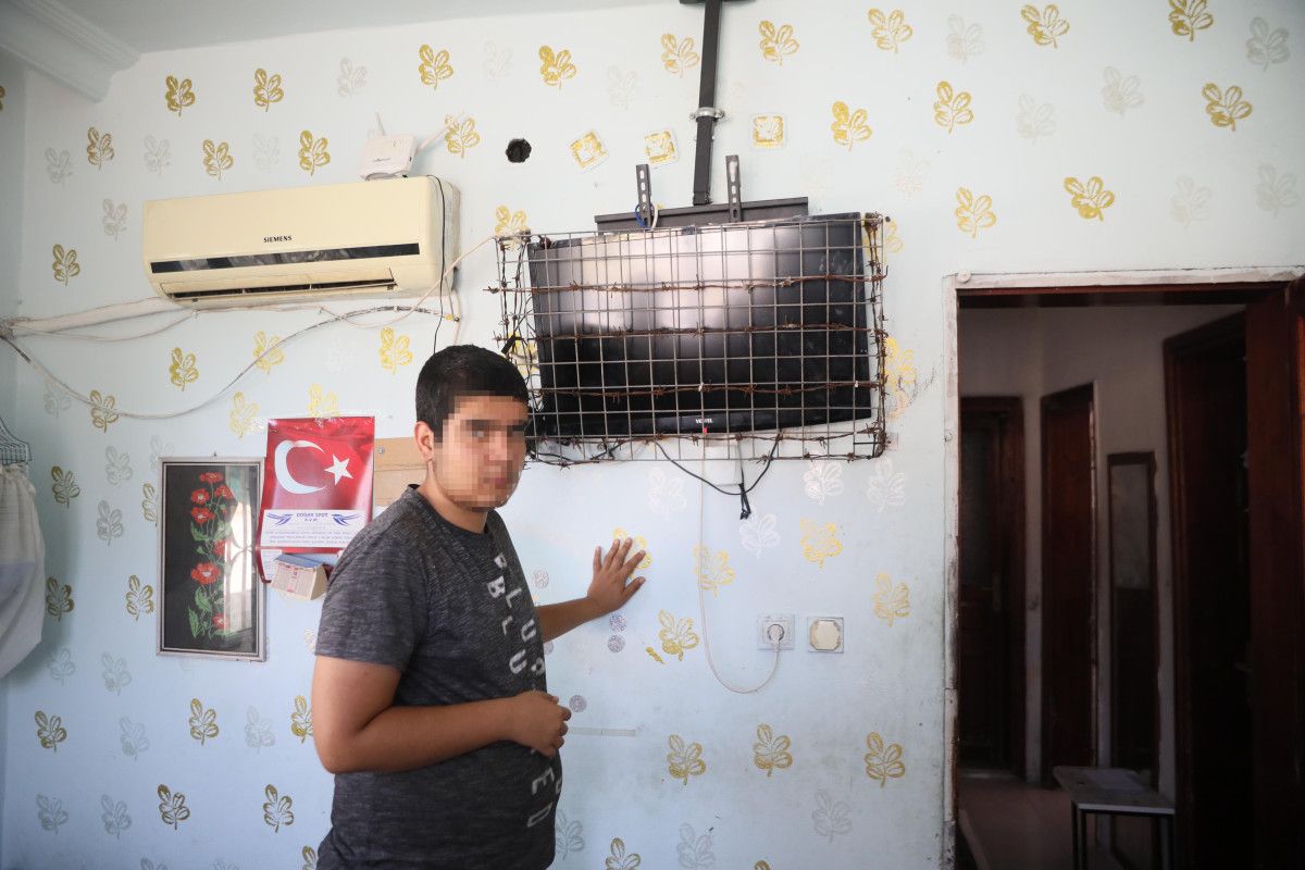 Zaman vakit konuttaki eşyalara ziyan veren Muhammet’in ailesi, kırılacak eşyaların etrafını telle çevirerek tedbir almaya çalışıyor.