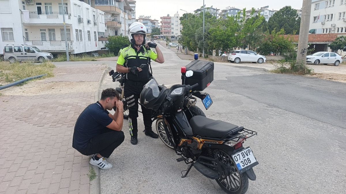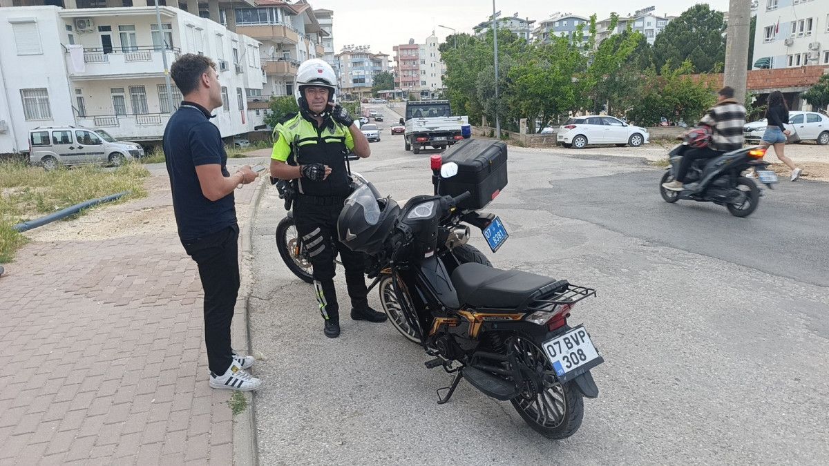 Polis takımı tarafından yapılan denetimde, 07 BVP 308 plakalı motosikleti kullanan Ebubekir K.’nin şoför evrakının olmadığı belirlendi.