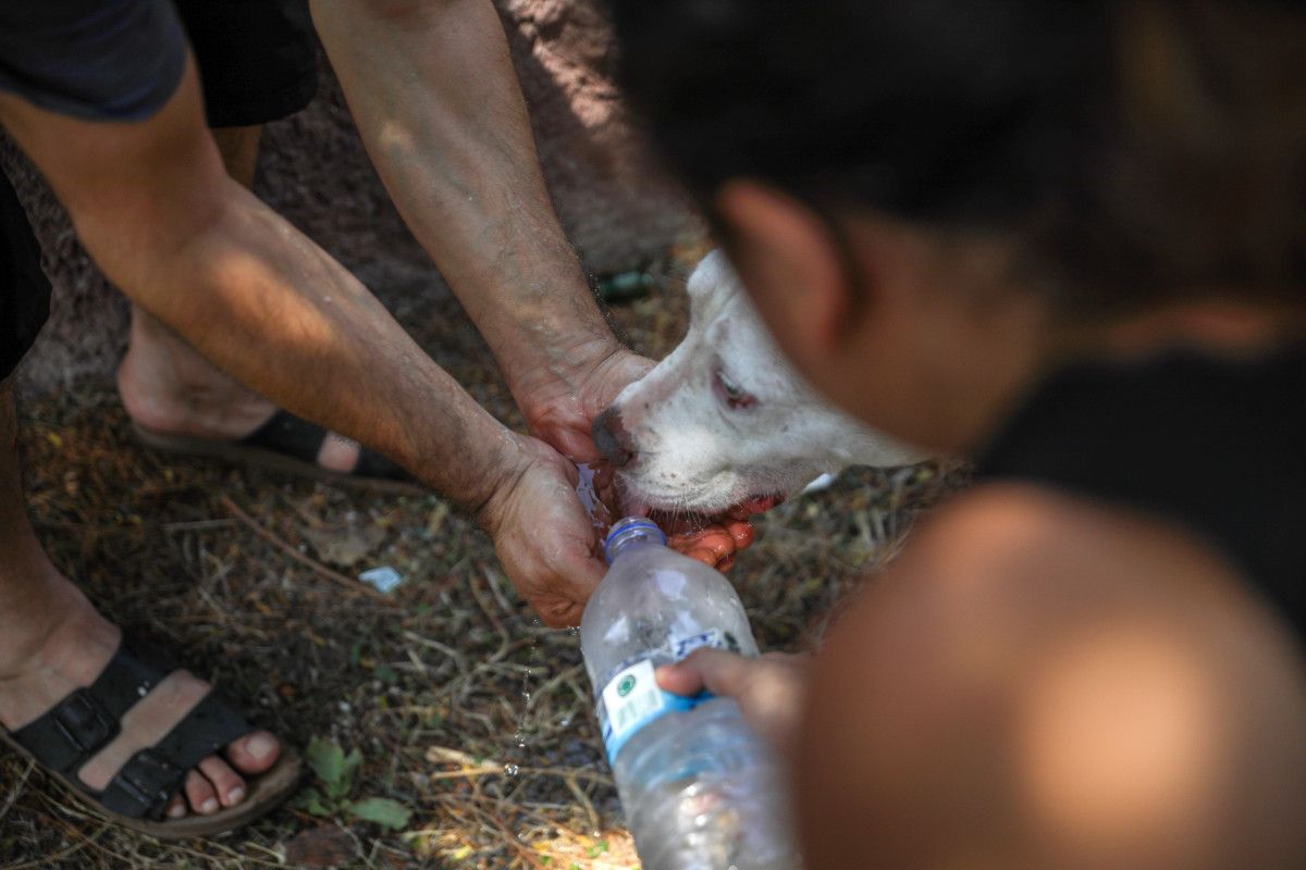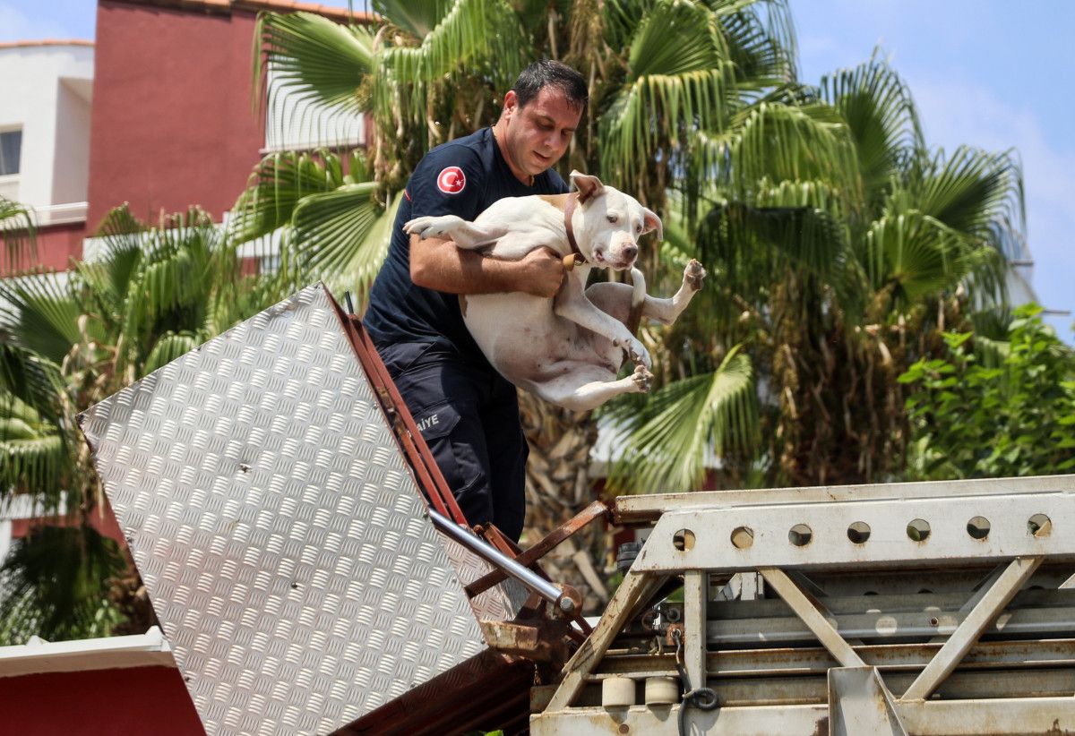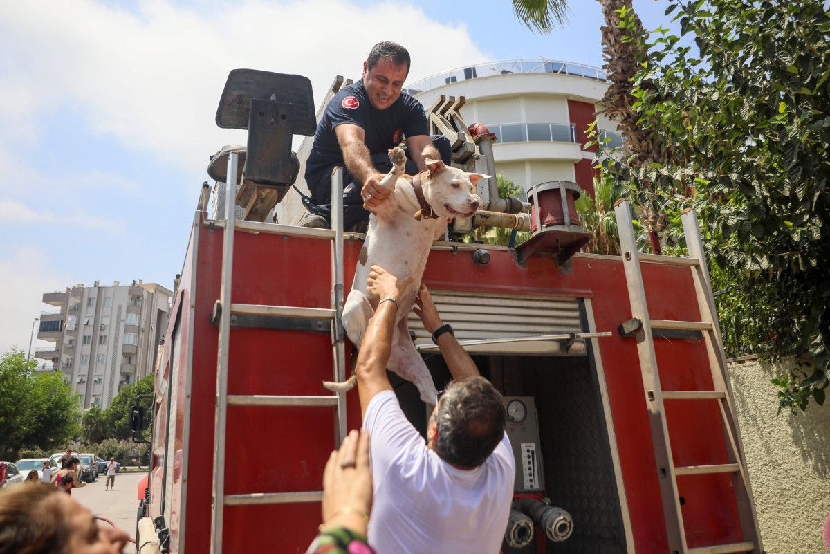 Bu sırada yanan dairenin yanındaki balkonda bulunan ‘Miya’ isimli köpek de sepetli merdiven aracılığıyla itfaiye tarafından kurtarıldı. Köpek, vatandaşlar tarafından itfaiye aracından alınıp su içirildi.