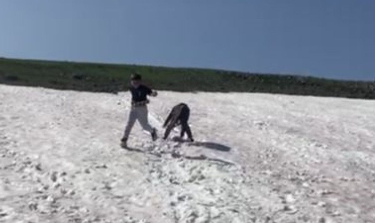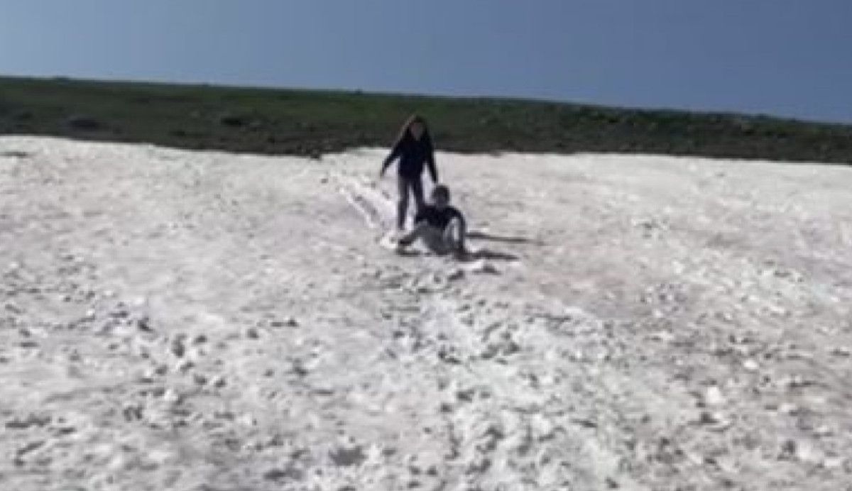 Burası Ardahan merkeze bağlı 2100 rakımlı Çataldere Köyü Yaylası. Yaz ayında çocuklar kar keyfini yaşıyor. Bu onlar için çok hoş ve heyecanlı.” dedi.