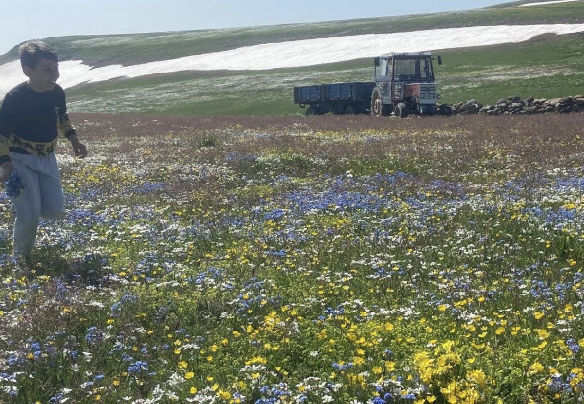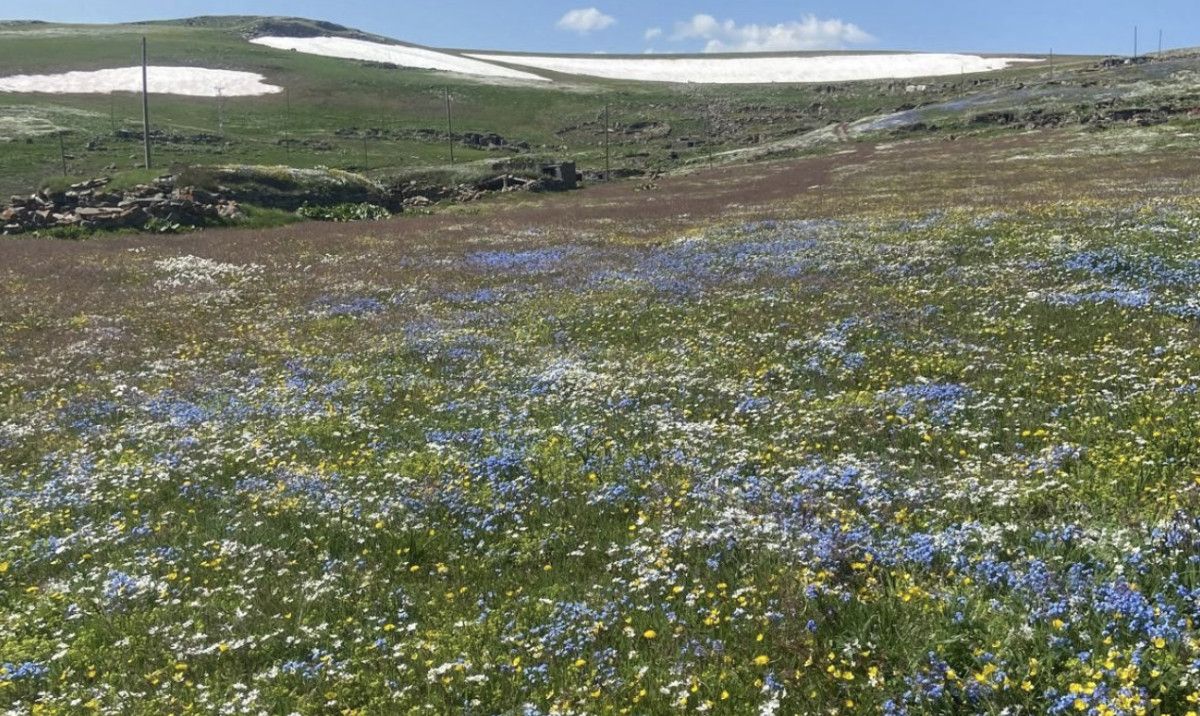 Yaylanın etrafını çevreleyen dağların yüksek bölümlerindeki kar birikintileri, eteklerde çiçek açan bitki örtüsüyle birleşince kartpostallık manzaralar ortaya çıktı.