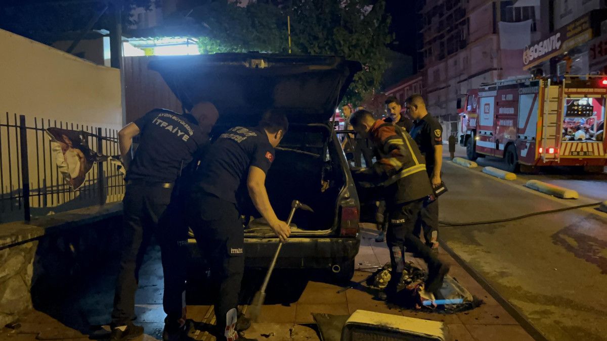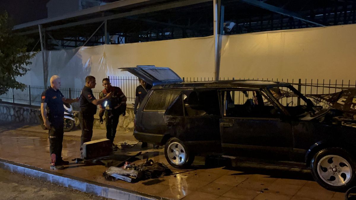 İtfaiye takımlarının müdahalesiyle alevler söndürülürken, araba kullanılamaz hale geldi.