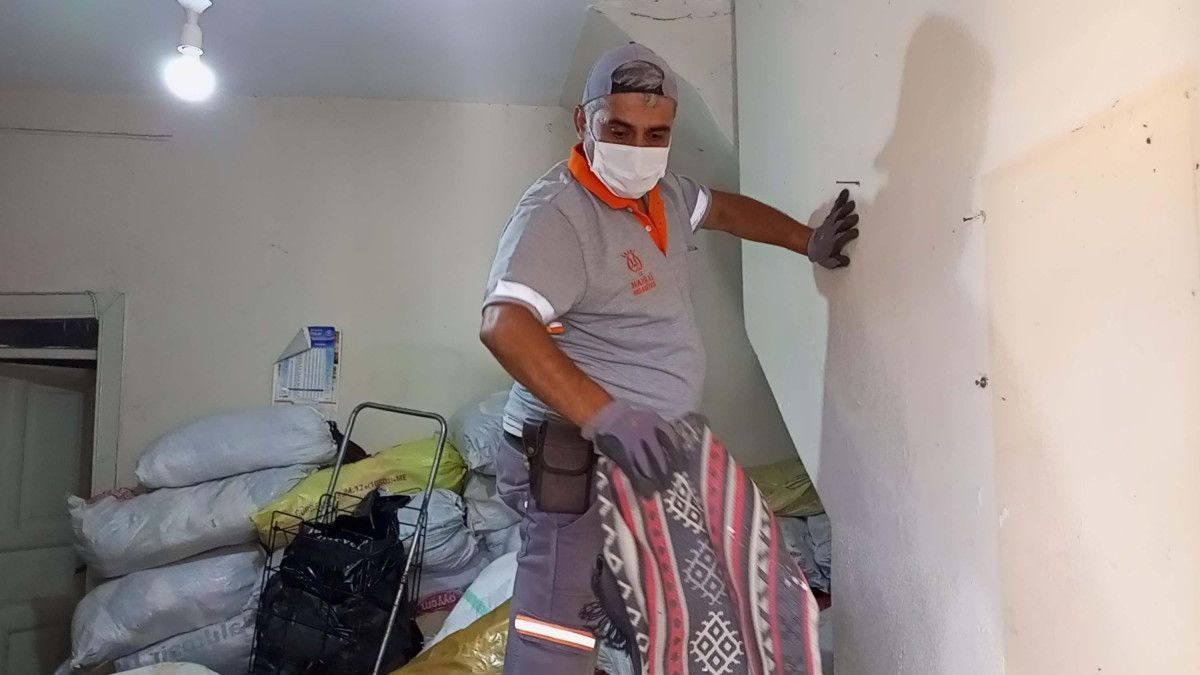 Bir ihbarı kıymetlendiren Nazilli Belediyesi Zabıta Müdürlüğü grupları, yalnız yaşayan Y.Ç.’ye ilişkin konutun 4 odasının da çöplerle dolu olduğunu tespit etti.