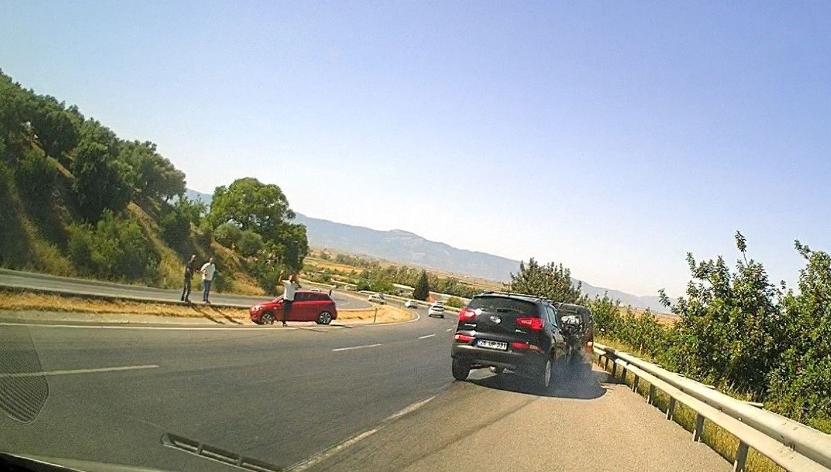 Dümdüz yolda giderken araçların savrulup yoldan çıktığını gören vatandaşlar araçlarını sağa çekip, gelen öteki şoförleri uyarmaya başladı.