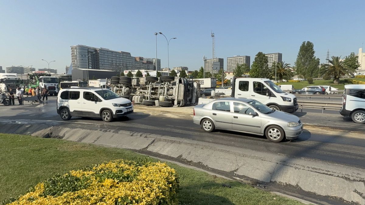 İstanbul’un Bahçelievler ilçesinde Basın Ekspres Mahmutbey istikameti yan yolunda Ramazan Begik yönetimindeki beton mikseri, virajı alamayınca denetimden çıkarak yan yola devrildi.