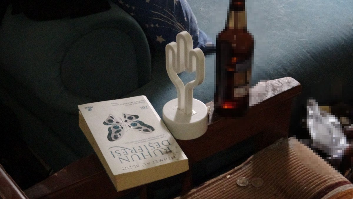 Evdeki boş alkol şişelerinin fazlalığı dikkat çekerken, yarısı dolu olan bir alkol şişesinin yanında ‘Ruhun Deşifresi’ isimli bir kitap dikkatlerden kaçmadı.