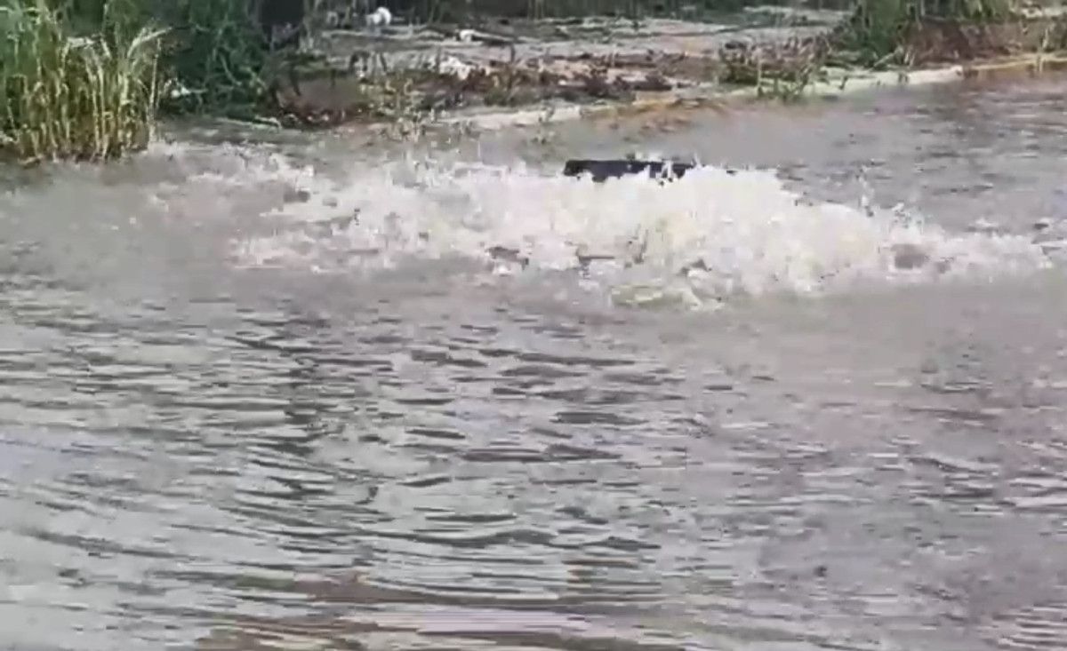 Yol, biriken sular nedeniyle trafiğe kapatıldı.