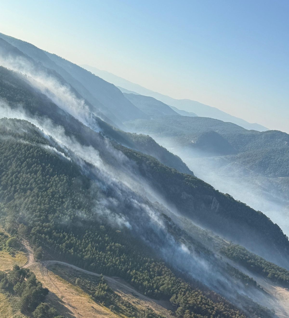 Yer yer dumanların çıktığı alanda havadan ve karadan müdahale devam ediyor.