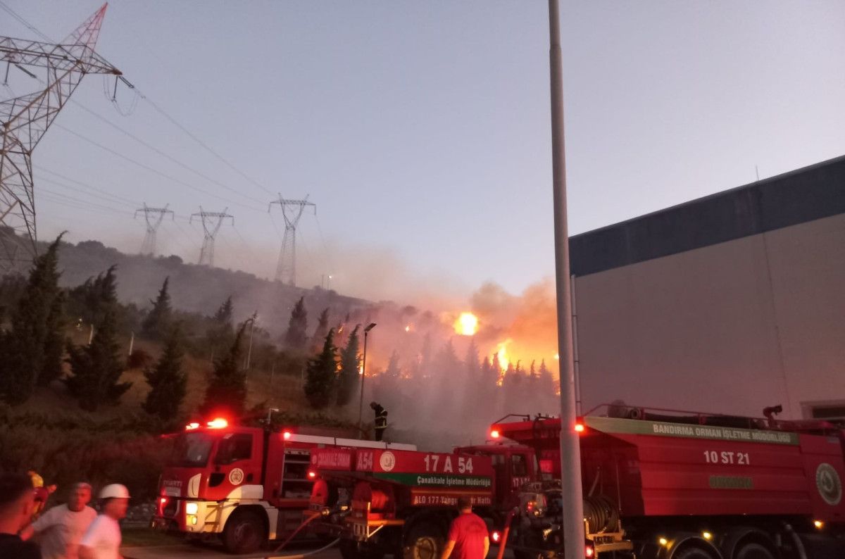 Sanayi yatırım yerlerinin de etkilendiği yangında alevler, Çanakkale kara yolu ile Erdek Körfezi ortasında kalan zeytinliklere sıçradı.