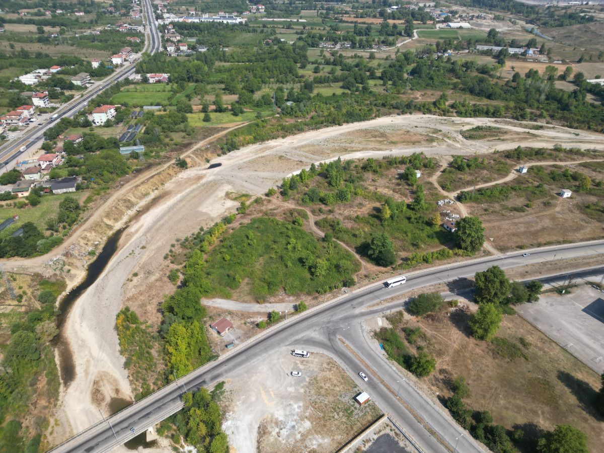 Su düzeyi azalan Kirazlıköprü Barajı ve kuruyan ırmak yatağı dron ile görüntülendi.