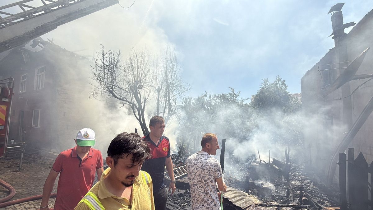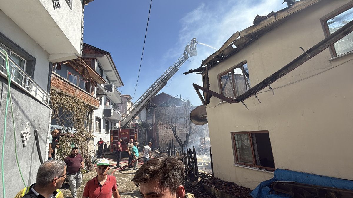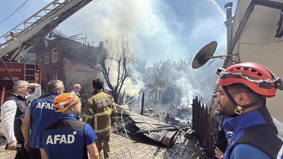 Evde yaşayan aileler yangın sırasında dışarıya çıkarken, rüzgarın tesiriyle alevler binayı kısa müddette sardı.