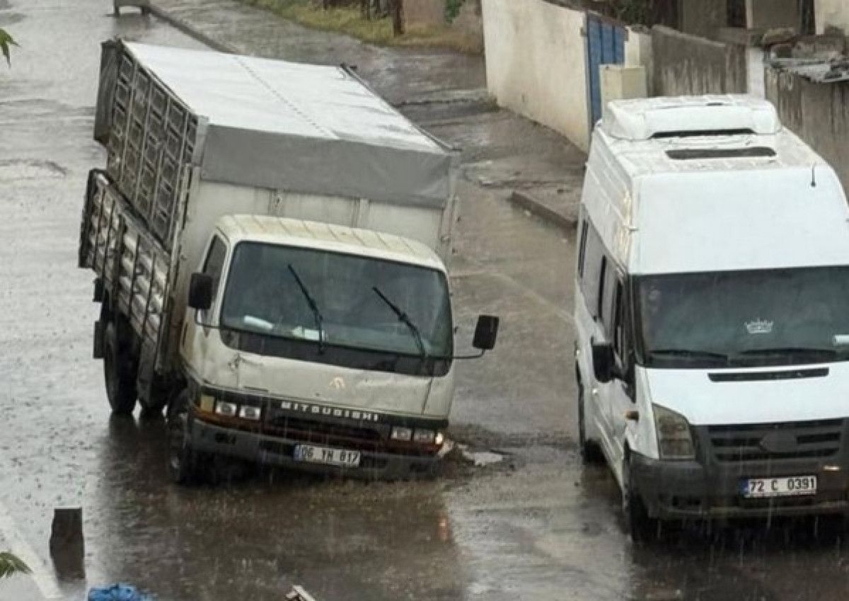 Batman’ın Bağlar Mahallesi’ndeki Nergis Caddesi’nde belediyenin başlattığı altyapı çalışması, tamamlanmadan bırakılınca faciadan dönüldü. Akşam saatlerinde tesirli olan sağanak, eksik bırakılan tabanda çökmeye yol açtı. O esnada yolda ilerleyen bir kamyonet, çökme sonucu oluşan dev çukura düştü. Araçta maddi hasar meydana geldi.