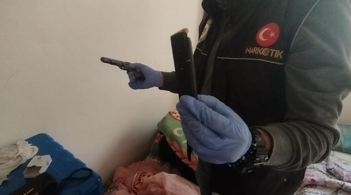 Operasyonda 514 gram sentetik kannabinoid (bonzai), 17 gram metamfetamin, 30 adet sentetik ecza, 3 ruhsatsız tabanca, 67 adet fişek, 1 pompalı tüfek, 21 tüfek kartuşu, 2 kasatura ve hatadan elde edildiği bedellendirilen 38 bin lira nakit para ele geçirildi.
