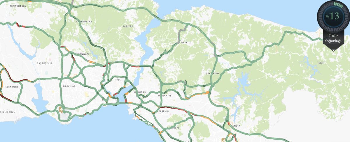 İstanbul’da şu dakikalarda trafik yoğunluğu yüzde 13 olarak ölçüldü.